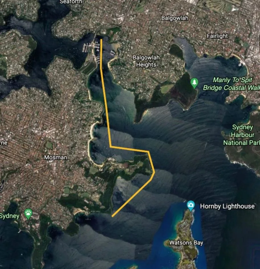 At the big white drum approaching Clifton Gardens Wharf turn anticlockwise (left hand in) returning to the start.